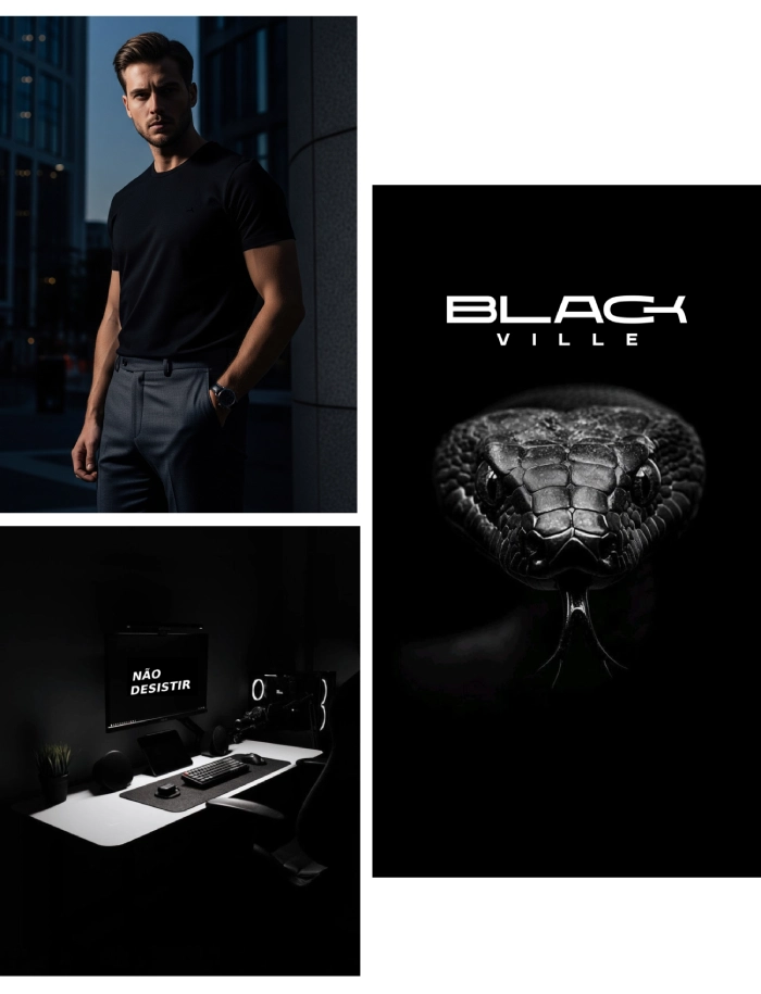 A Black Ville não é só roupa, é um código. Um selo de pertencimento para aqueles que desafiam a normalidade, que recusam a mediocridade. Aqui, vestimos a ambição. A cor preta não é apenas uma escolha, é um símbolo: da intensidade, da sofisticação, do mistério, da presença imponente.